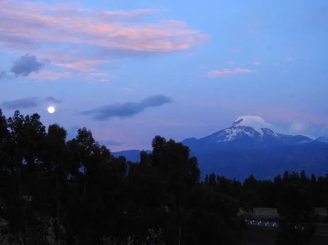 Vista del volcán Cayambe al atardecer (3ro. más alto del Ecuador)